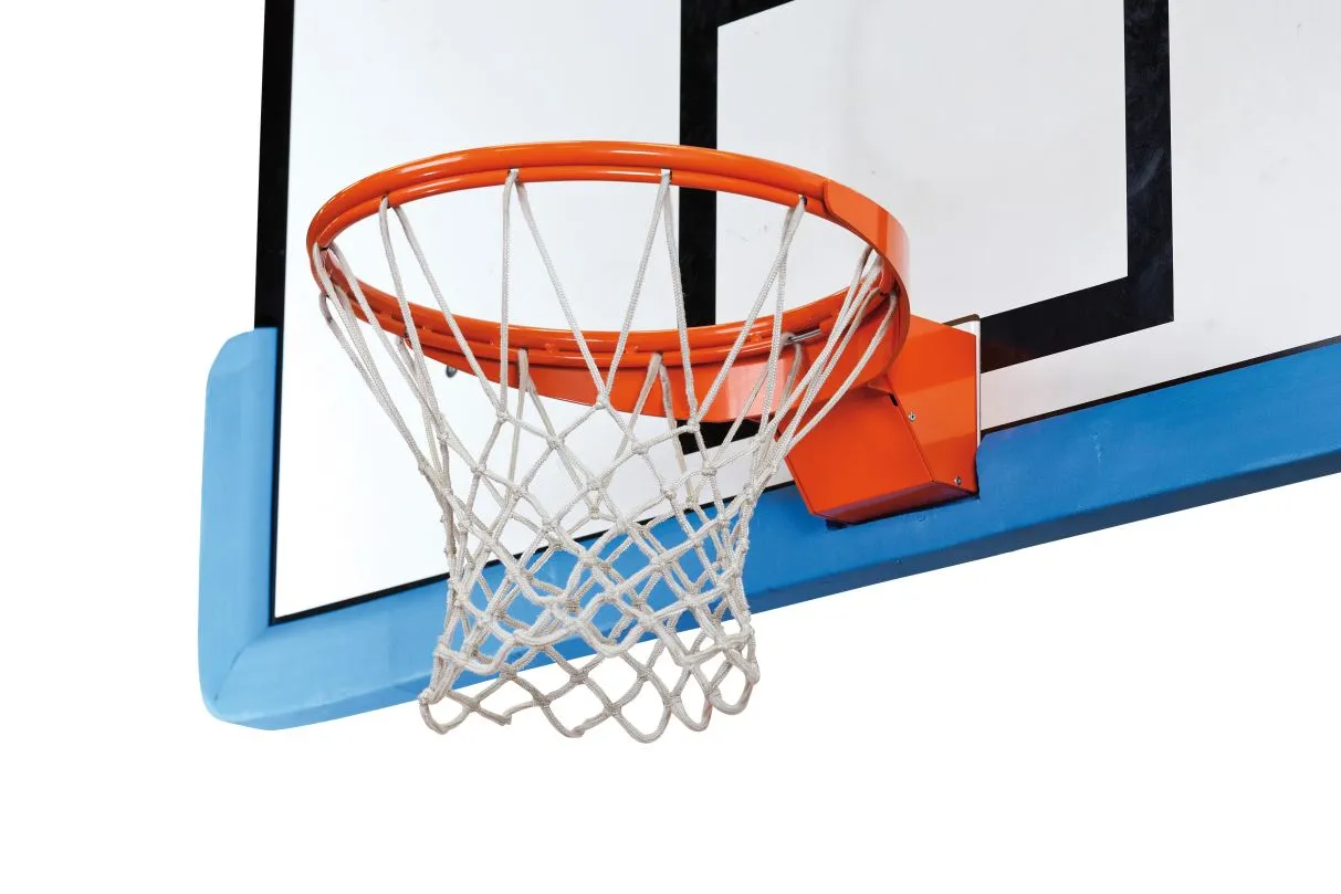 Basketballkörbe OFFICIAL verfügen über Sicherheits-Netzbefestigung nach Vorgaben der DIN und der FIBA. Das Basketballnetz wird bei diesem Korb durch einen umlaufenden Stahldraht gehalten. Diese Art der Netzbefestigung und das völlig geschlossen Gehäuse der Federmechanik schließt eine Verletzungsgefahr durch hervorstehende oder verbogene Netzhaken gänzlich aus. Der Durchmesser des Basketballkorbes beträgt nach offizieller Vorschrift 45 cm.