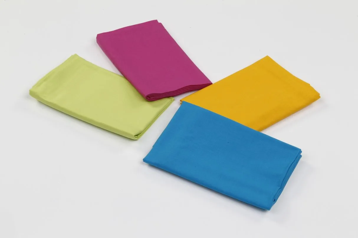 Erhältlich in Größe 70 x 70 cm, als 4er-Set und 12er-Set, sowie als 4er-Set in der Tücher-Größe: 150 x 150 cm.