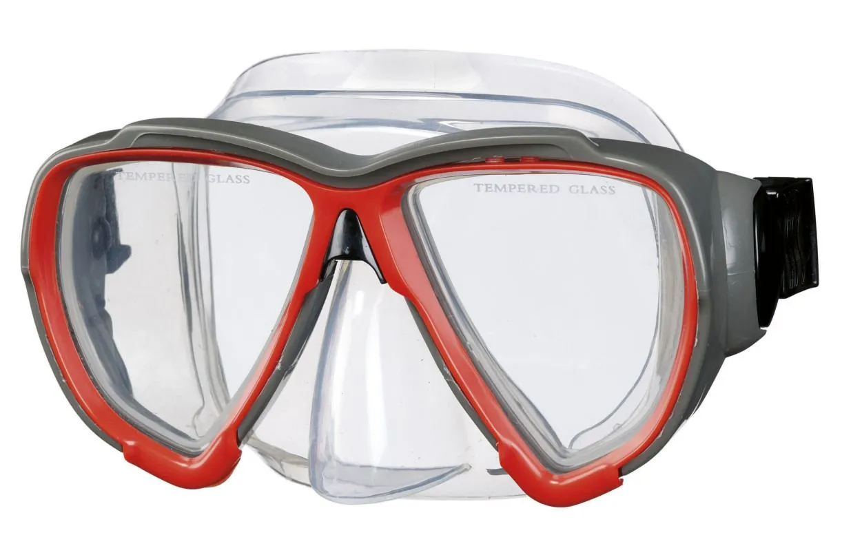 Tauchermaske für Jugendliche und Erwachsene. Silikon Kopfband mit seitlichem Schnellverschluss. Getestet nach PSA (persönlicher Schutzausrüstung). Inkl. Hartbox.