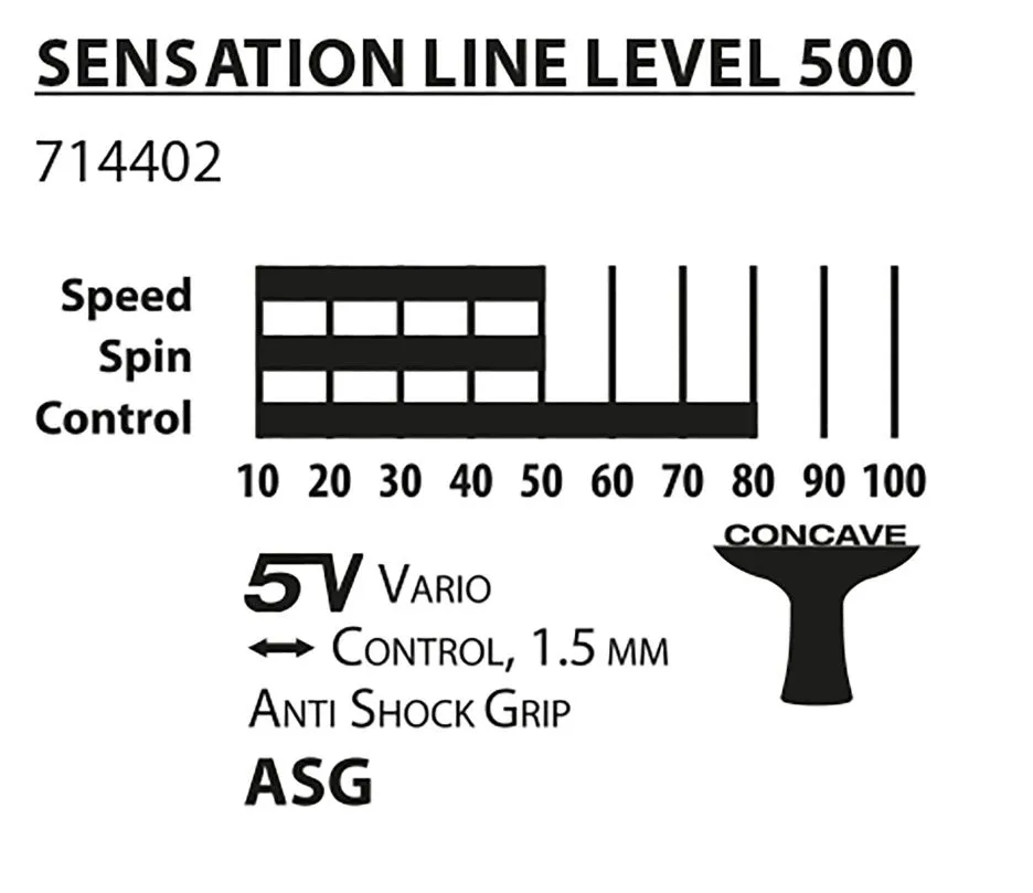 Der „Sensation 500 ASG“ von Donic-Schildkröt ist ein Tischtennis Schläger in sehr hochwertiger Verarbeitung, der mit dem rutschsicheren „Anti Shock Grip“ (ASG) ausgestattet ist. Der weiche und sehr haltbare Schaumstoffüberzug saugt den Schweiß auf und sorgt für exzellente Griffsicherheit sowie mehr Komfort. Die Schläger der „Sensation Line“ sind optimal geeignet für ambitionierte Hobby- & Freizeitspieler, speziell auch als Anschaffung für den Schulsport. Dieser Schläger ist mit dem Schildkröt Elite-Belag ausgestattet, der ausreichend Grip hat, um verschiedene Spieltechniken auf den Ball zu übertragen. Der zwischen Belag und Holz befindliche 1,5 mm starke Schwamm erzielt eine sehr gute Ballkontrolle.