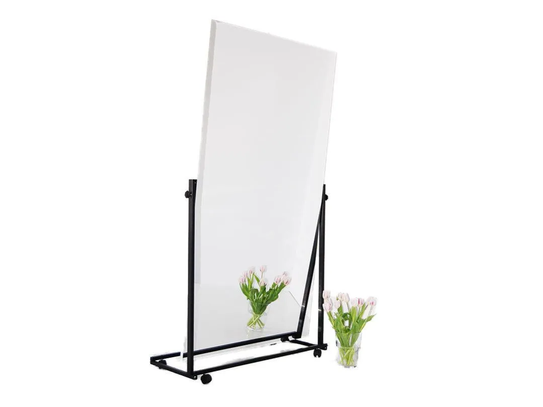 Er bietet Ihnen die Möglichkeit, die Vorteile des superleichten und verzerrungsfreien Folienspiegels zu nutzen und ihn flexibel einsetzen zu können, da gerade hier Räume vielfältig bespielt werden und die Spiegel einfach zu bewegen sein müssen.