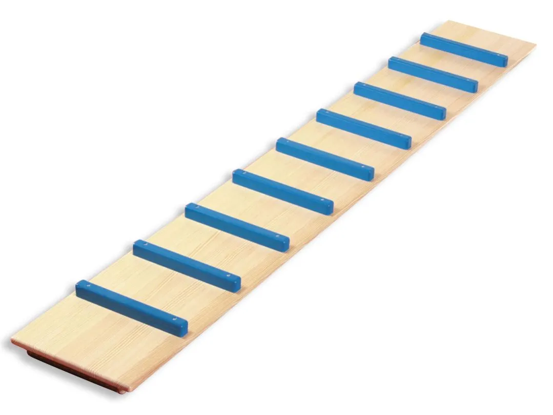 Die Hühnerleiter, auch Kletterleiter oder Kletterbrett genannt, kann auf einer Seite in den Schwebebalken, Sprungkasten oder in eine Sprossenwand eingehängt werden und lädt als schräge Ebene zum Balancieren und Klettern ein. Kombiniert mit weiteren Einhängeelementen wie Rutschbrett oder Turnleiter können vielfältige Bewegungsparcours für Kinder in Schule, Kindergarten oder Kinderturnen geschaffen werden. Turnkästen und Zubehör sind auch im Set erhältlich.