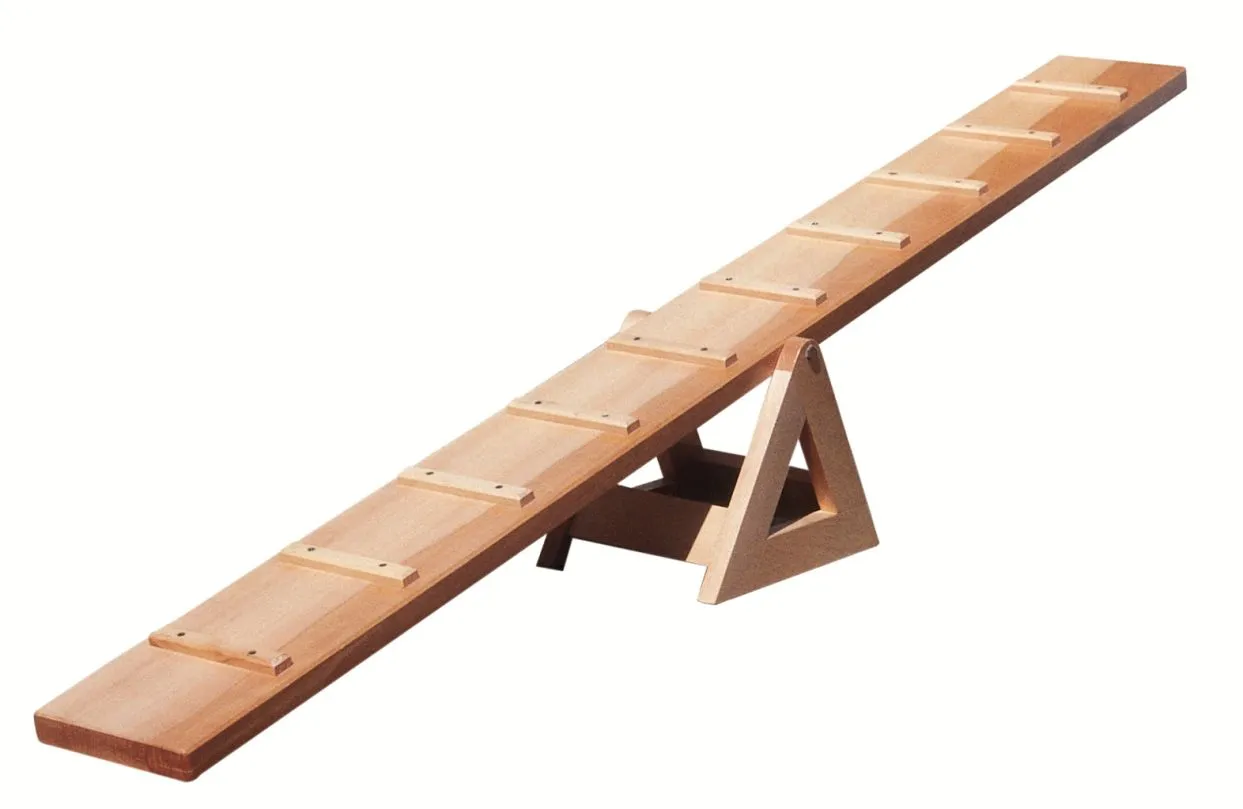 Die Laufwippe ist ein Balanciergerät aus hochwertigem Holz zur Schulung von Koordination und Gleichgewicht. Die Wippe ist ein Muss für jeden Bewegungsparcours. Schon die Kleinsten können an der Hand eines Erwachsenen die ersten Erfahrungen mit dem Kippmoment machen, ehe sie dann schon bald freihändig über die Wippe laufen. Die aufgeschraubten Sprossen sorgen für erhöhte Trittsicherheit. Das Tragen von (Turn-)Schuhen wird empfohlen.