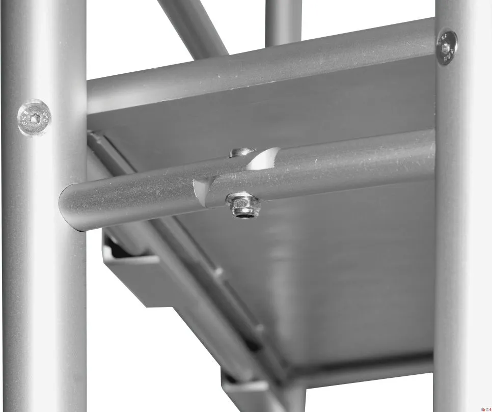 Praktisches Schiedsrichterpodest mit 3-fach höhenverstellbarer Standfläche und 3-Punkt-Befestigung am Volleyballpfosten. Der Auf- und Abbau erfolgt ohne Werkzeug. Das Podest aus Aluminium ist zusammenklappbar und dadurch platzsparend lagerbar.