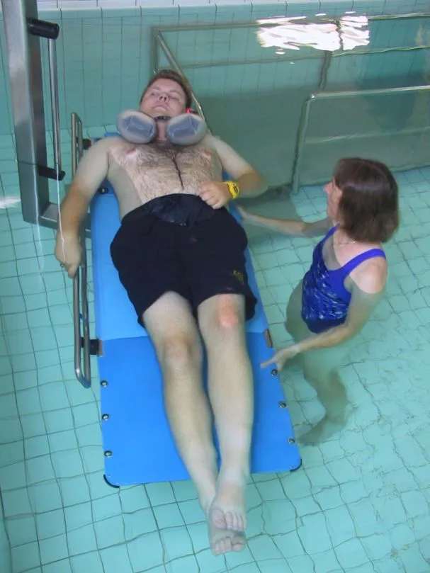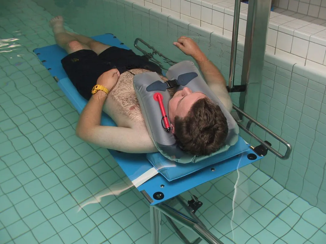 Der Schwimmkragen für Badetherapie und Rehabilitation, für unsichere Schwimmer und für Menschen mit Behinderung. Der Therapiekragen ermöglicht eine komfortable Position, die den Kopf sicher über Wasser hält. Er dient der Sicherheit bei Behandlungen im Bewegungsbad, bei medizinischen Bädern oder Reinigungsbädern sowie bei Unterwassermassagen im Wannenbad.