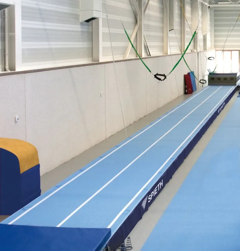 Die Wettkampf-Tumblingbahn „Spiethway III“ mit FIG Zertifikat bietet aufgrund der optimal abgestimmten Materialien einen hohen Rebound.