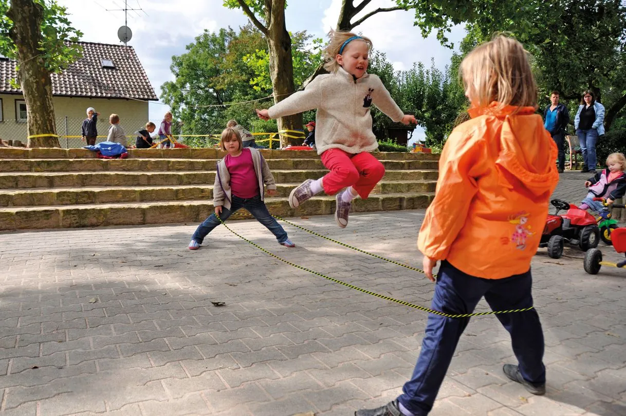 In der Regel jedoch wird das Hüpfgummi um die Füße zweier Teilnehmer gespannt und gedehnt. Diese stehen sich, die Gesichter zugewandt, einander gegenüber. Ein dritter Mitspieler hüpft nun in, auf oder zwischen diesem Hüpfgummi in vorher verabredeten Rhythmen. Begeht er einen Fehler, so ist der Nächste an der Reihe. Gelingt ihm der fehlerfreie Ablauf, so wird der Schwierigkeitsgrad erhöht. Die Standardhöhen sind dabei Knöchelhöhe, Kniehöhe und Schritthöhe.