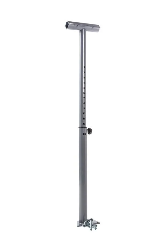 Höhenverstellbarer Standfuß von 79,5 cm bis 118 cm für eine Ballettstange zur Bodenmontage. Die Befestigungsplatte wird an 4 Punkten am Boden verschraubt. Somit lässt sich die Ballettstange hervorragend vor Spiegelwänden oder nicht tragfähigen Wänden montieren.