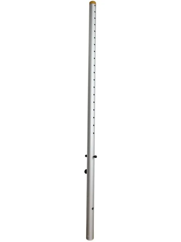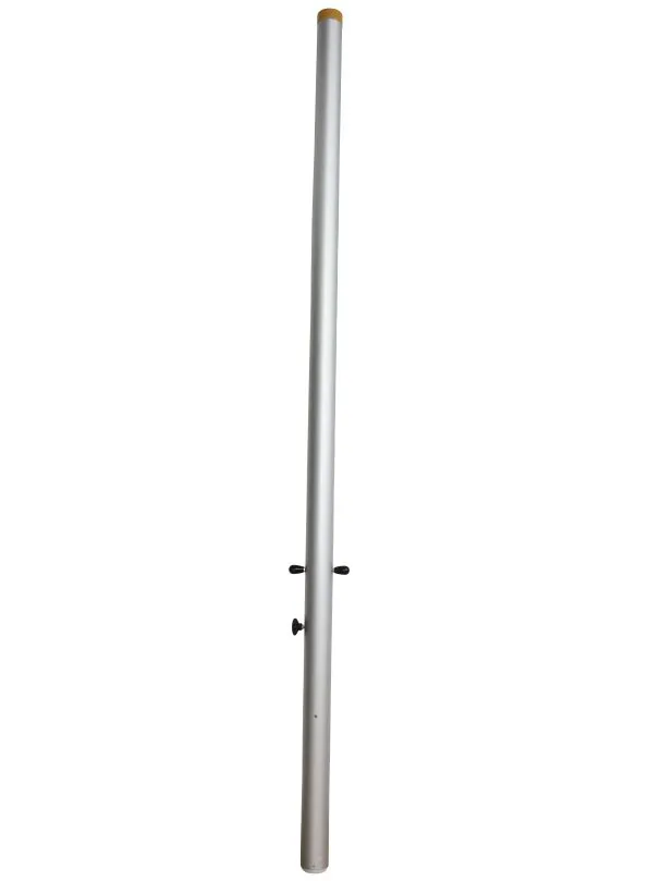 Säule aus eloxiertem Leichtmetall, Ø 100 mm, Länge 300 cm mit Gummipuffern an beiden Enden und Haltegriff. Die Säulen sind mittels Klemmvorrichtung arretierbar.