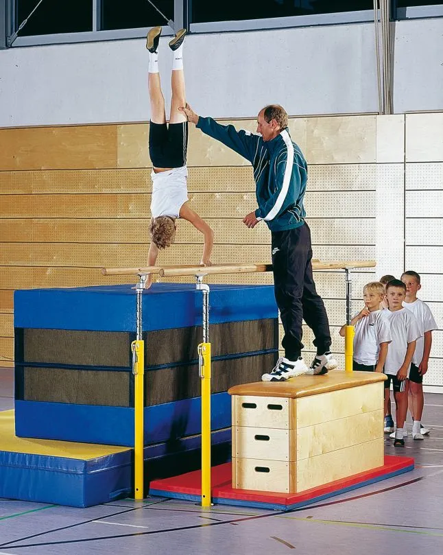 – Turnquader als Auffangmatte unter den Holmen bei Rollen- oder Handstandübungen (der Turnquader passt genau zwischen die Barrenfüsse)